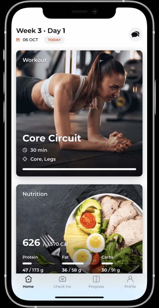 Progress tracking and performance benchmarks directly in the app